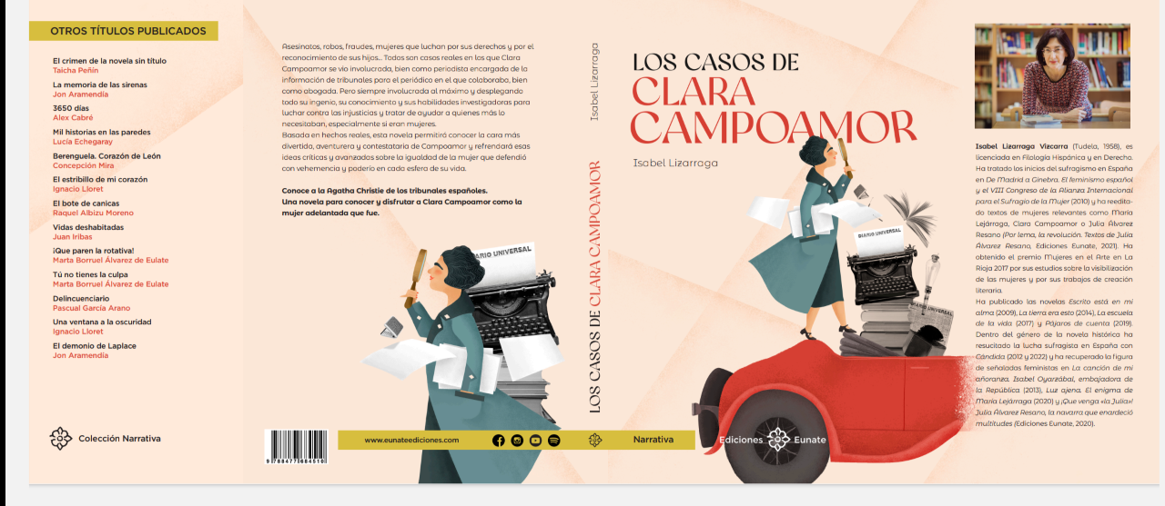 Muy pronto saldrá a la calle la novela que narra las aventuras más divertidas de Clara Campoamor: la persecución al marido agresor de Mercedes Medina; la defensa de Dolores Amat, asesina de su novio; los amores de don Pedro y María Prudencia; la defensa de Victoriana Sevilla frente al abogado Alcalá-Zamora; la búsqueda de Maritxu, huída de su casa por estar embarazada; el saqueo de joyas en el sanatorio de Fuenfría; el robo perpetrado por la propia Campoamor para demostrar la inocencia de su defendido…