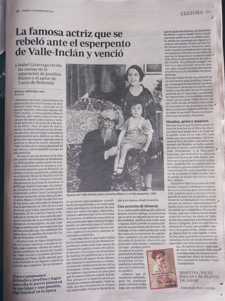 Zenda me ha animado a recordar en sus páginas virtuales los motivos que me impulsaron a escribir Josefina, Valle-Inclán y su pleito de amor, que relata las peripecias que empujaron a la esposa del genio a separarse de su consorte.